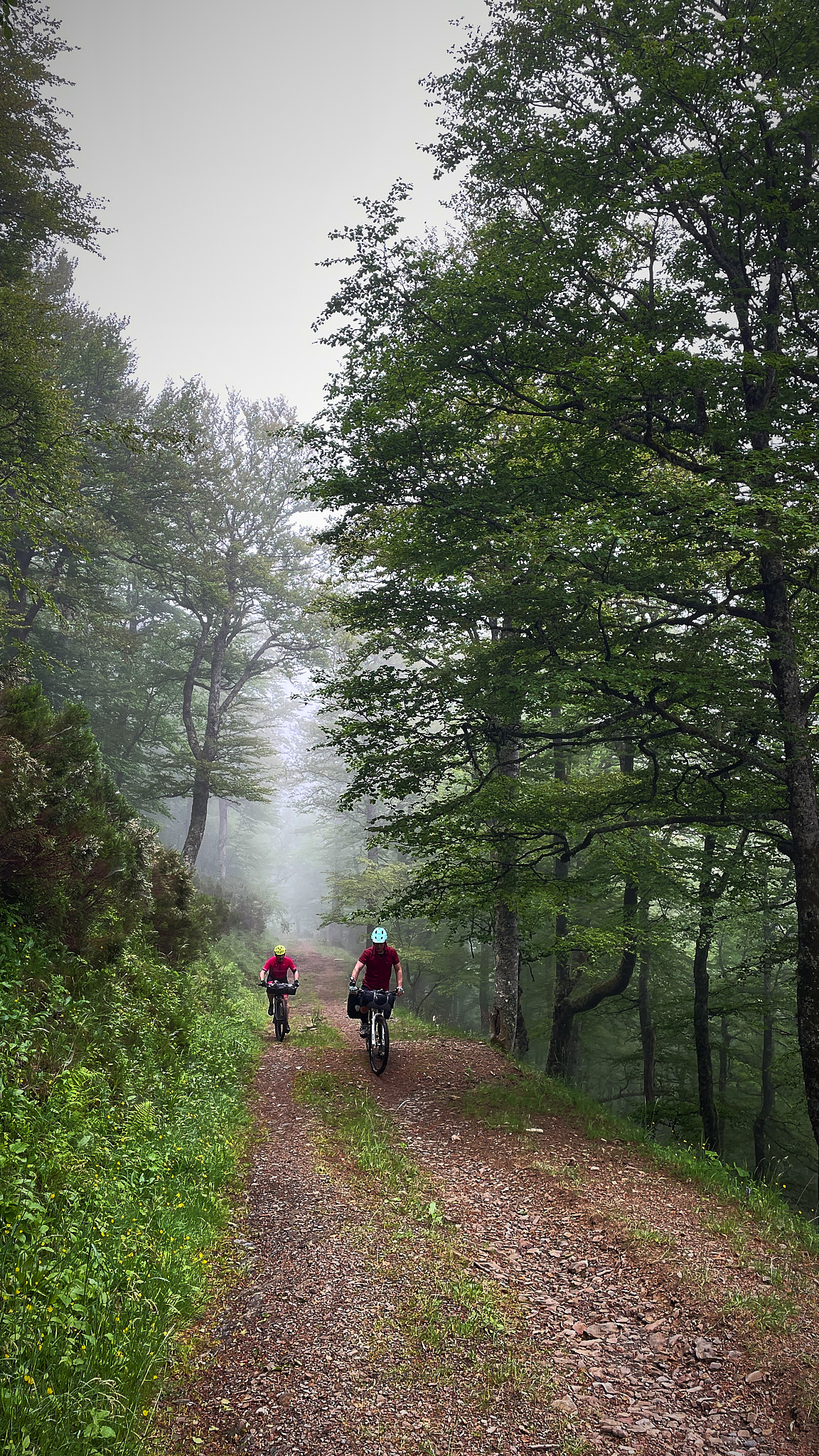 Vaya por delante el comentar que, como siempre, ha sido duro, pero un poquito más… Pero también ha sido bello, muuuuuuuucho más… En el regazo de los valles de montaña por los que hemos ciclado, donde el tiempo se dilata como la sombra de los viejos robles y las jóvenes hayas, la grandeza se viste de humildad haciéndonos empequeñecer y ha permitido deleitarnos con cada inspiración respiratoria o con cada golpe de pedal. Los valles, pliegues verdes de estas tierras, acunan arroyos que cantan su paso entre piedras pulidas y helechos y musgo esmeralda, esos valles con gigantes babosas que descaradamente se reían de nuestro lento transitar. Las cumbres de roca caliza, grisáceas, serenas y altivas, han acariciado nuestras bicis viajeras, y el aire, fresco y puro, ha traído consigo el aroma a vegetación y a tierra mojada, una fragancia de eternidad. En esta edición de la Transmorucha, la belleza grita, y a la vez susurra en cada flor silvestre, en el vuelo pausado del milano y en el eco de un silencio que reconforta el alma. Vaya plenitud; no cabemos de contentos.